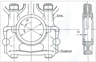 Далее проверяют прилегание фальшвала к постелям блока, прохождение щупа 0,03 мм в направлении вертикальной оси блока не допускается. При наличии отклонения до 0,3 мм износ устраняется шабровкой выступающих постелей, при наличии отклонения более 0,3 мм износ устраняется наплавкой с последующей механической обработкой. При помощи болтов (рисунок 2.2, позиция 15), гаек (рисунок 2.2, позиция 9) и шайб (рисунок 2.2, позиция 10) устанавливаются подвески (рисунок 2.2, позиции 11–12) на блок. После чего устанавливают болты (рисунок 2.2, позиции 6–7) и шайбы (рисунок 2.2, позиции 8). Затем необходимо затянуть болты (рисунок 2.2, позиции 6–7) и гайки (рисунок 2.2, позиция 9).