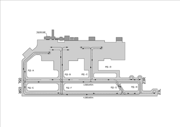 На рисунке 2.1 представлена схема расположения рулежных дорожек и взлетно-посадочных полос.