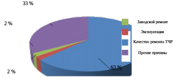 В большинстве случаев заходы на неплановый ремонт являются следствием неудовлетворительного качества текущего ремонта и технического обслуживания. Это подтверждает анализ причин постановок на неплановый ремонт (рисунок 1.7).