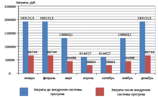 Как видно из таблицы, при использовании системы прогрева наблюдается сокращение затрат в 2-3 раза. Наглядно экономию средств демонстрирует рисунок 4.1.