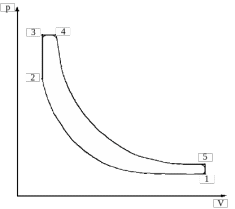 За основу рабочего принимается теоретический цикл со смешанным подводом теплоты (рисунок 4.1). После политропного сжатия (линия 1–2) теплота подводится сначала по изохоре 2–3, а затем по изобаре 3–4. Процесс расширения 4–5 считается политропным, а реальный процесс газообмена заменятся процессом отвода теплоты по изохоре 1–5