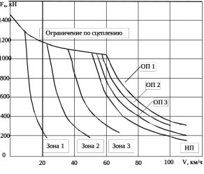 По результатам расчета строиться тяговая характеристика электровоза 2×2ЭС5К. Тяговая характеристика представлена на рисунке 2.3.