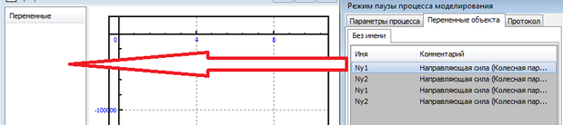 Модель загружена. Далее задаётся радиус кривой, тип профиля пути и скорость. Опыты проводятся с новыми колесными парами и рельсами, так как необходимо получить результаты, на которые влияет меньше факторов. Тем самым они будут более точными и достоверными. Все эксперименты выполняются со скоростью локомотивов 20 м/с. Кривые будут 200, 300, 350 метров. Коэффициент трения остаётся без изменений во всех случаях. Так же добавляется из мастера переменных направляющая сила в переменные объекта. Запускается опыт. После завершения опыта, через панель инструментов выводится графическое окно, и в него из переменных объекта перетягивается направляющая сила, для первой колесной пары, как показано на рисунке 2.2.