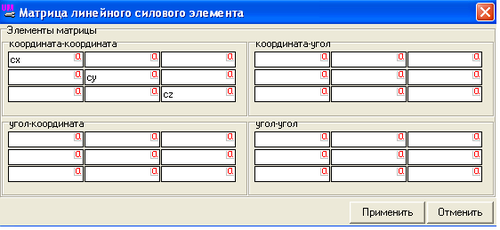 - после установки пружин необходимо задать матрицу жесткостей, как показано на рисунке 1.19.