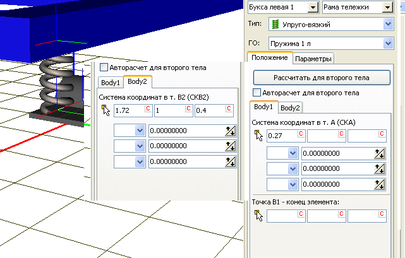 - в качестве первого тела для силы выбирается «Рама тележки», в качестве второго выбирается «Кузов»;