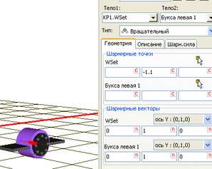 - создается тело буксы и вращательный шарнир, задаются точки прикрепления и смещения, как на рисунке 1.23;