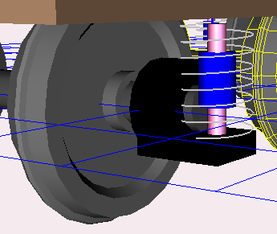 Для того, что бы модель стала завершенной и работоспособной необходимо добавить люлечное подвешивание и гасители второй ступени подвешивания. Точки крепления опор и демпферов, для упрощения, делаются одинаковыми. Эти точки необходимо выставить с точностью, как на рисунке 1.27.