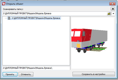 - модель тележки сохраняется с помощью меню: Файл/Сохранить как;