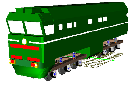 После этого делается всё – то же самое для второй тележки, вводится матрица жесткостей и на этом создание модели закончено. Готовая секция локомотива представлена на рисунке 1.28.