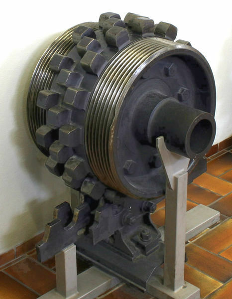 Зубчатый рельс прокладывается обычно посередине между двумя обычными рельсами. Соответственно, подвижной состав таких железных дорог оборудован зубчатым колесом [3].