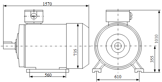 Для аналога индуктора используем технические характеристики и габаритно присоединительные размеры двигателя АИР355MB12.