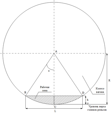 Зная рабочую зону одного устройства для одного колеса, определим площадь рабочей зоны для всего поезда.