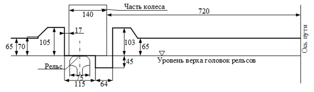 Нижнее очертание габарита с колесом и рельсом представим на рисунке 3.8.