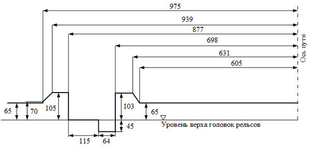 Нижнее очертание габарита приближения строения представлено на рисунке 3.7.