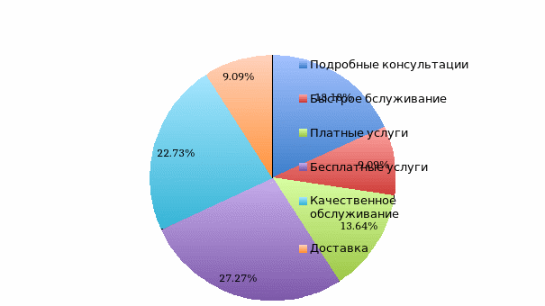 Также заслуживает внимания и тот факт, что покупатели магазина проявляют запросы в отношении дополнительных услуг. Структура покупательских предпочтений представлена ниже (см. рисунок 2.4):
