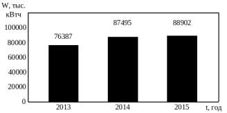 Как видно по гистограмме на рисунке 1.5 идет поступательное увеличение потребления электроэнергии на тягу. В 2015 году на тягу ушло на 1,6% электроэнергии больше, чем в 2014 и на 20% больше, чем в 2013.