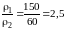 где ρ1 = 150 Ом – сопротивление верхнего слоя почвы; ρ2 = 60 Ом – сопротивление нижнего слоя почвы; α – коэффициент.