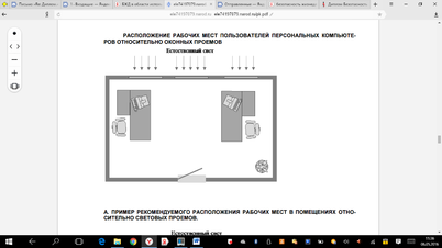 Рисунок 4.1 – Расположение рабочих мест пользователей персональных компьютеров относительно оконных проёмов