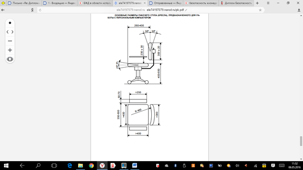 Рисунок 4.2 – Основные размеры кресла, предназначенного для работы с персональным компьютером