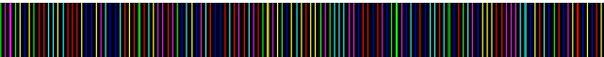 Используемая картина подсветки, показанная на Рисунке 4, представляет собой 128 узких вертикальных полос шести цветов (трех основных – R, G, B, и трех дополнительных – C, M, Y), разделенных промежутками черного цвета. Последовательность цветов получена при помощи генератора М-последовательностей, сочетание из каждых 3 соседних полос встречается только один раз.