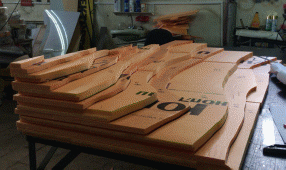 После одобрения рендера заказчиком, начинается построение стендовой модели. Для изготовления рельефа был выбран материал – пеноплекс. Пеноплекс – разновидность пенопласта, но, в отличии от классического пенопласта, является более плотным, а, соответственно, и более прочным, материал идеально подходит для вырезки рельефа, так как легко режется горячим ножом. Листы пеноплекса разрезаются согласно векторным сечениям, построенным в Corel Draw, каждый лист представляет собой слой рельефа, как на 3D-модели. Листы скрепляются между собой острыми и тонкими штырьками, сечения пеноплекса стыкуются между собой с помощью пазов (рисунок 46).