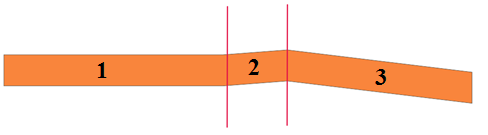 Раскладка мостовой производится также в программе Corel Draw, в отличии от рельефа, стенки и верхние перекрытие мостовой и пирса вырезаются отдельно и совмещаются, поэтому раскладка примет вид развернутой трехмерной фигуры без основания, так как основанием является первый слой рельефа. Для удобства сбора модели мостовой её необходимо разбить на три части, по местам изгиба, указанным на рисунке 36.
