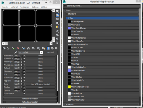 Следующим этапом получения качественного рендера является текстурирование моделей, так как на момент завершения проектирования они имеют тонированние в стиле «оттенки серого». В базе программного продукта 3DSMax 2014, в котором были построены модели, нет необходимых текстур, поэтому они были подобраны на специализированных сайтах и импортированы в базу данных 3DSMax. Для получения улучшенного изображения использовался дополнительный программный продукт V-Ray – основное назначение которого – рендеринг трехмерных объектов, его особенностью является интеграция в программные продукты Autodesk Maya и 3DSMax. Поэтому и текстуры используются именно для этого продукта. После успешного интегрирования программного продукта V-Ray и импорта текстур, необходимо в окне выбора материалов (рисунок 44) выбрать из списка и задать все необходимые материалы.