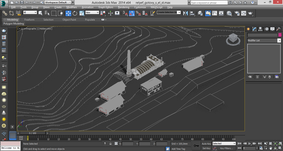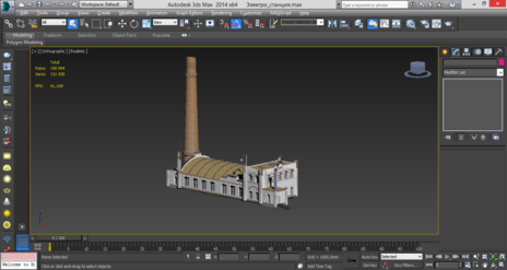 Непосредственное построение модели здания началось с импортирования плана здания согласно масштабу 1/75 в программу 3DSMax. Согласно плану, построены и экструдированы стены и труба, затем проводится работа над мелкими объектами: окнами, кронштейнами, крышей, фонарями и так далее. Общее число объектов в модели станции составляет чуть меньше 1000 (рисунок 41), раскрывать построение каждого элемента не имеет смысла. Условно объекты можно разделить на группы:
