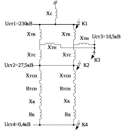 Рисунок Б.4 – Расчётная схема тяговой подстанции