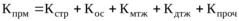где Кстр – затраты на выполнение строительных работ, тыс.р.; Кос – стоимость основных средств, тыс.р.; Кмтж – стоимость работ по монтажу оборудования, сооружений и других объектов основных средств, тыс.р.; Кдтж – стоимость работ по демонтажу оборудования, сооружений и других объектов основных средств, тыс.р.; Кпроч – прочие затраты производственного назначения на оснастку объектов, инструмент, инвентарь и прочие хозяйственные цели по реализации объекта, тыс.р.