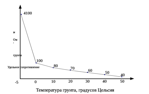 Рисунок Г.1 Зависимость удельного электрического сопротивления грунта в зависимости от его температуры