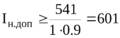 где к1-коэффициент, учитывающий условия прокладки кабеля; к2-коэффициент, учитывающий число работающих кабелей проложенных рядом в трубах или без труб. Согласно [4] к1 равен 1, к2 равен 0.9.
