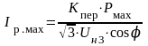 Максимальный рабочий ток, А фидера районной нагрузки определим по формуле