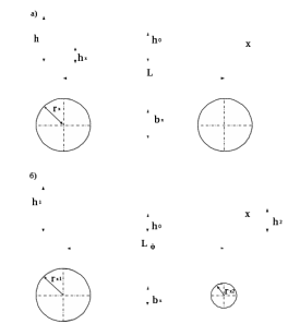 Принцип построения зоны защиты двойного стержневого молниеотводам при расположении молниеприемников на разных уровнях (рисунок 3.1 б.).