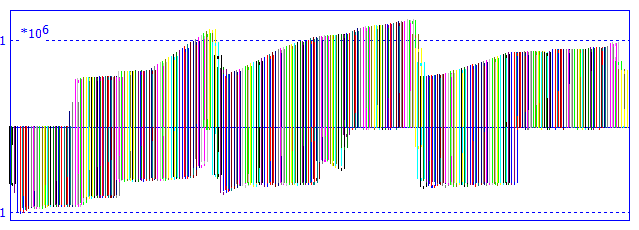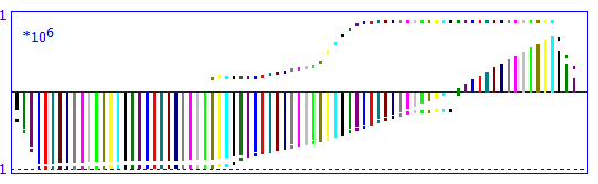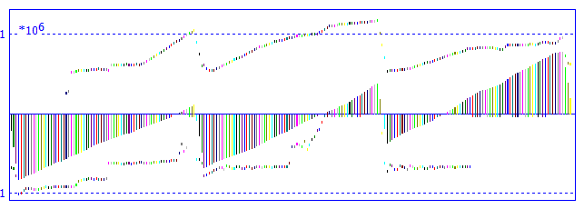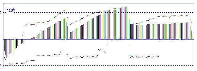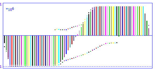 Рисунок 5.20 – Гистограмма сил (хвост поезда на подъеме, а остальная часть на спуске)