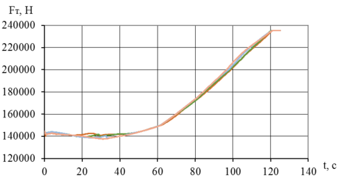 Рисунок 5.15 – График реализуемой силы тяги на каждую секцию.