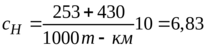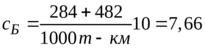 Расчет себестоимости, руб./10 т-км, производится на 10 т-км по формуле