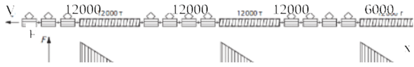 Рисунок 3.12 – Схема распределенной тяги ЛССЛ при равенстве масс объединенных поездов.