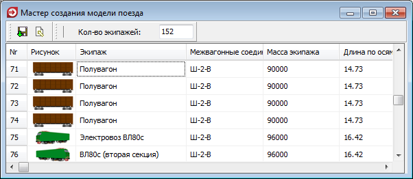 Теперь, в окне мастера создания поезда для каждой схемы формирования задается необходимое количество экипажей. В общем виде формула для расчета количества экипажей имеет вид