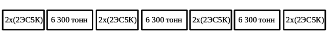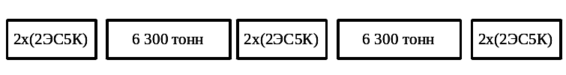 Схема формирования поезда массой 6 300 тонн изображена на рисунке 4.4. Это реально эксплуатируемая схема формирования с распределённой тягой, которая применяется на участке Смоляниново – Находка.