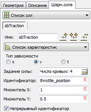 Для того, чтобы изменить тяговые характеристики локомотива требуется в программе UM Input открыть объект, которым будет являться секция локомотива ВЛ80С. Далее открыть вкладку Шарнирная сила и выбрать список тяговых характеристик, как показано на рисунке 4.8.