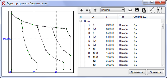 Рисунок 4.9 – Окно редактора кривых (Тяговая характеристика 2ЭС5K)