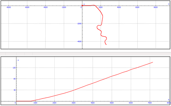 Окно редактора делится на 2 части. В верхней части окна задается профиль пути в плане, а в нижней части – вертикальный профиль. Профиль пути в плане описывает геометрию пути в горизонтальной плоскости, здесь описываются как кривые, так и участки профиля не содержащих кривых.