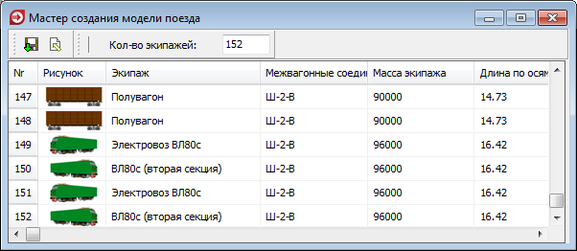 Рисунок 4.10 – Создание модели поезда массой 12 600 тонн