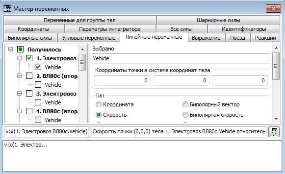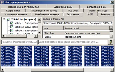 Во вкладке Мастер переменных требуется добавить переменные, а именно, силы в межвагонных соединениях, как показано на рисунке 4.23.