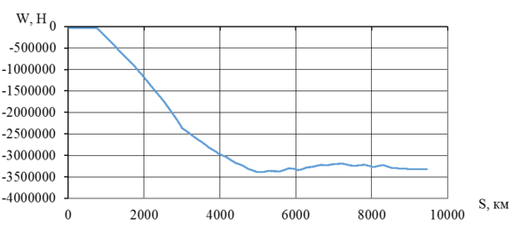При любой скорости движения UM Simulation, автоматически определяет силы сопротивления движению и, при необходимости строит график. Для поезда массой 12 600 тонн график сопротивления показан на рисунке 5.3