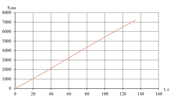 Ниже, на рисунке 5.4 представлен график зависимости пройденного пути от времени моделирования.