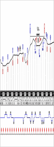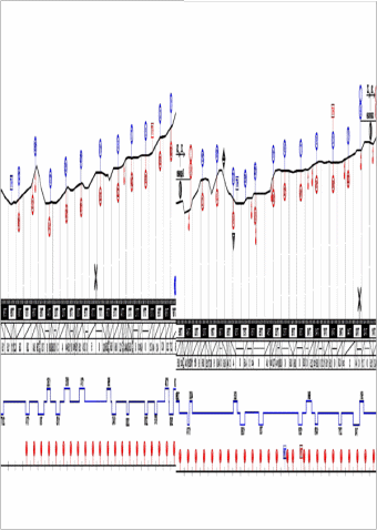 | Расстояние | Номер элемента в спрямленном профиле | Уклон спрямленного элемента, ‰ | Режим движения | Скорость, км/ч | Время движения, мин | Величина приведенного выпрямленного тока, А |