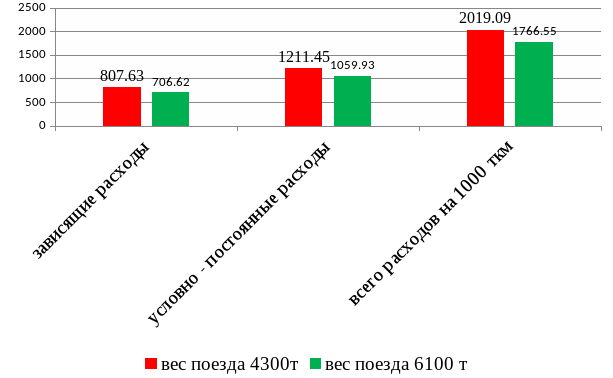 Из представленных расчетов видно, что себестоимость грузовых перевозок при массе состава 4300т составляет (на 10 ткм) 20, 19 руб.