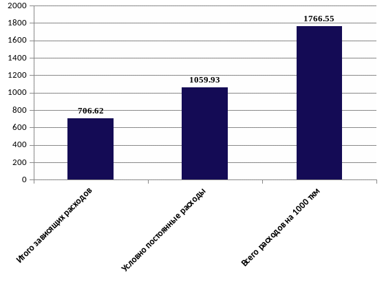 | Всего расходов на 1000 ткм | 1766,55 | ||